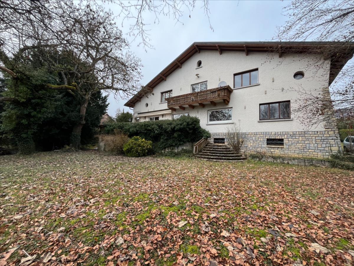 Type : Maison Situation : Delle, Territoire-de-belfort (90) Ancien / Neuf : Ancien Etat : A rénover Type : MAISON DE VILLE/ VILLAGE Surface Loi Carrez : non m² Surface Terrain : 1600.00 m² Nombre de Pièces : 10 Nombre de Chambres : 8 Exposition : S Nombre de Niveaux : 1 Stationnement : oui Terrasse : oui Cave : oui | Maison de 10 pièces (Construction traditionnelle de 1958, d'environ 330 m² habitables, à rénover totalement), située dans un secteur résidentiel calme, proche de toutes commodités (frontière suisse), comprenant :- au sous-sol : garage pour 4 véhicules, chaufferie, dégagement-bûcher, buanderie, une pièce, cave à vin, remise (sous terrasse).- au rez-de-chaussée surélevé : perron d'entrée, hall, salon-salle à manger-séjour (le tout donnant sur vaste terrasse), cuisine (avec accès terrasse), dégagement, WC, chambre parentale avec salle de bains, deux chambres, salle de bains, WC.- au 1er étage : palier, WC, salle de bains avec sauna et WC, 4 chambres (dont 1 avec point d'eau et 1 avec balcon), lingerie (avec 1 pièce en enfilade), greniers en soupente.- au 2ème étage : salle de jeux.Terrain attenant en nature de sol, cour et jardin, le tout sur environ 16 ares (Division et bornage en cours).Les informations sur les risques auxquels ce bien est exposé sont disponibles sur le site Géorisques : www.georisques.gouv.fr |